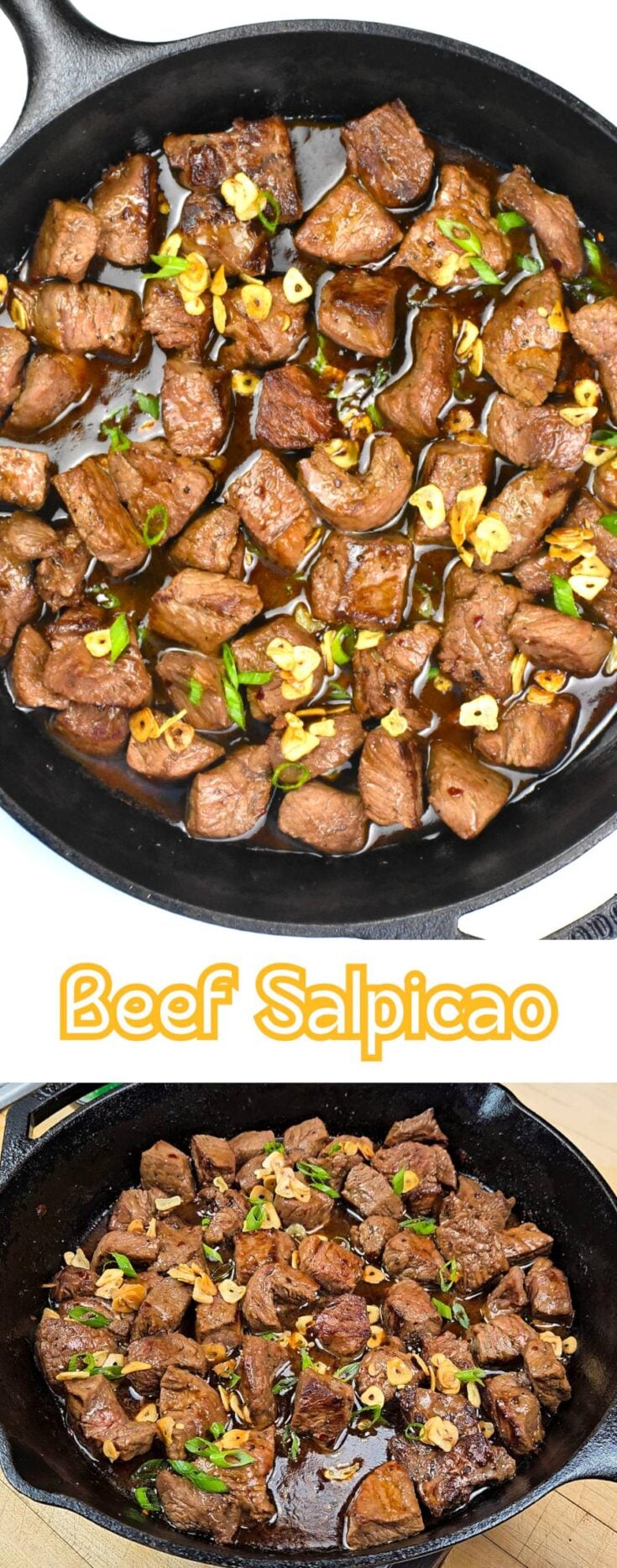 This Filipino Beef Salpicao is packed with bold garlic flavor and tossed in a rich soy butter sauce. Tender seared beef cooks in just 15 minutes and is perfect served over hot steamed rice.