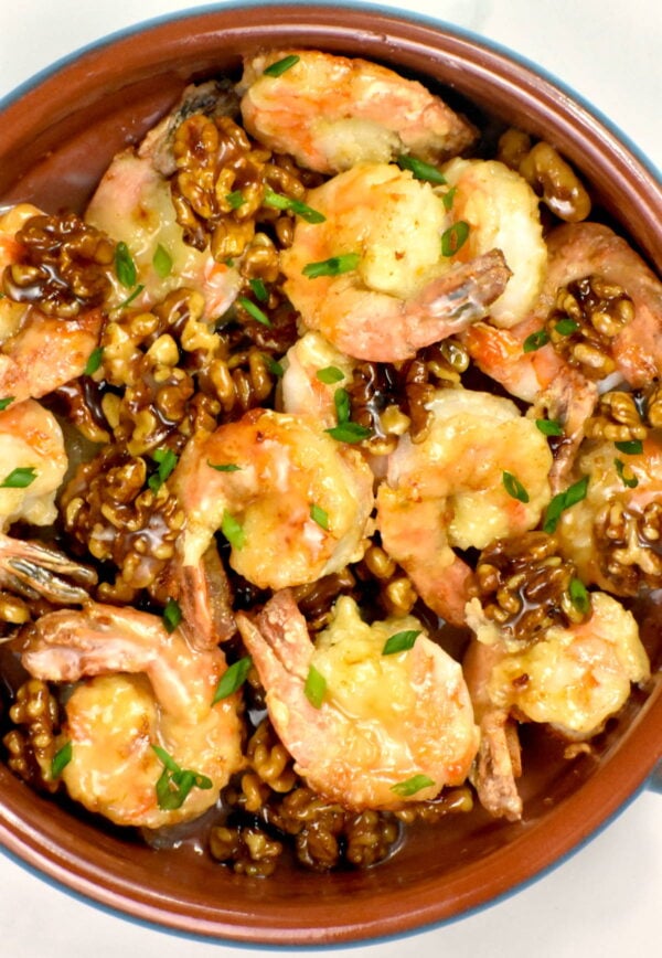 Crispy Honey Walnut Shrimp tossed in a creamy sweet sauce with crunchy candied walnuts. This copycat Panda Express favorite is easy to make at home and dangerously addictive.