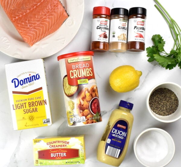 1. Prep: First, I preheat the oven to 425°F and line a baking pan with foil. Then, in a small bowl, I mix together the brown sugar, paprika, garlic powder, cayenne, salt, and pepper. Next, I grab another bowl and mix the chopped parsley and breadcrumbs with melted butter, a pinch of salt, and some black pepper.