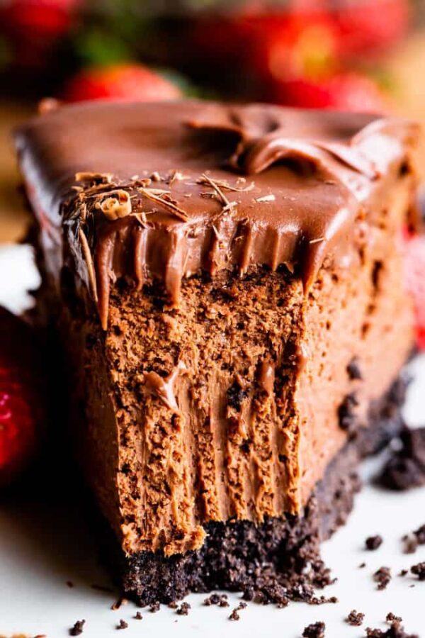 Big, bold dark chocolate flavors are loaded into this ultimate chocolate cheesecake. The flavors comes from a mix of cocoa powder and melted chocolate. It’s rich and super creamy delicious. Make this as a center piece for you next family gathering and see it gone in minutes.